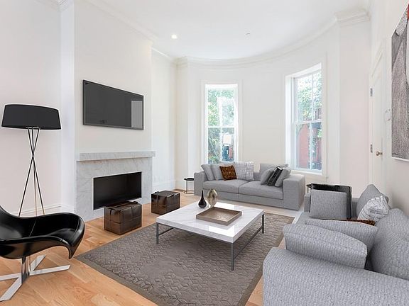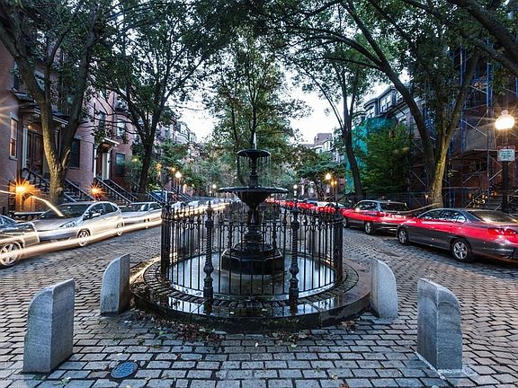 Meticulously renovated in 2016, this sophisticated 3br 3.5 bath parlor triplex seamlessly blends Victorian charm with contemporary design. Ideally situated one of the South End's most coveted streets, this bright home faces west & overlooks a picturesque fountain and a tree lined historic square. A wall of glass, which spans the backside of the building, high ceilings & true curve windows accentuate the depth of the open concept living and dining area. The adjacent chef's kitchen features contemporary cabinets from Leicht, a generous center island with a honed Carrara marble counter & top of the line appliances. An oversized walk-out deck, built with the highest quality Epi hardwood, is an ideal place for a morning coffee or evening dinner. Both the deck & patio are fully equipped w gas, electric and water lines. The master suite is complimented with floor to ceiling windows, walk-in closets & an impressive bathroom w statuary marble and a steam shower. 3 zone HVAC & 2 direct parking