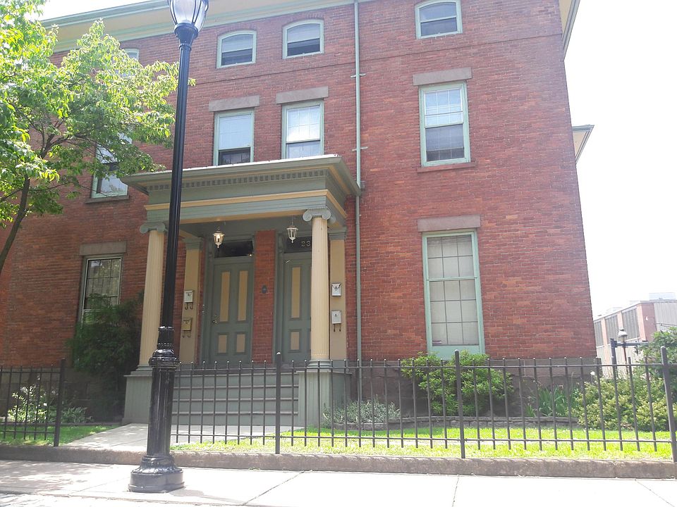 Charming second floor unit on historic Congress Street, just south of downtown. Decorative fireplaces in front foyer and living room. Built-in cabinetry in living room. Washer/dryer in unit. Small rear deck. One-car detached garage plus additional off-street parking place in lot. Central air. Freshly painted and new carpeting. Credit/background check. Minimum monthly income 3 times rent. Available to view Saturday 7/13/19 between 10 a.m. and 1 p.m. Tenant pays for gas heat/hot water and electric.
