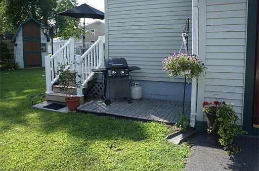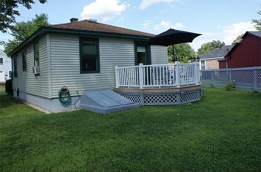Why rent when you can own! This well-maintained, charming Bungalow style home is not too big, not too small, and nestled on .13 acres of level nicely groomed land with a yard and cute matching storage shed. The kitchen has custom built cherry cabinets; an eat-in area accented by a wall of warm knotty pine, and is bathed in natural light. The enclosed porch and composite deck add extra space for living and entertaining. The master bedroom is complete with two closets and a door leading out onto the relaxing deck for your morning coffee or some evening star-gazing. There is also access to the deck from the yard by a lovely little staircase that borders a brick patio perfect for a grill and potted herb garden. The wide driveway has plenty of room for parking. This is a wonderful opportunity for a single person or a couple to build equity and become a home owner.