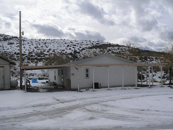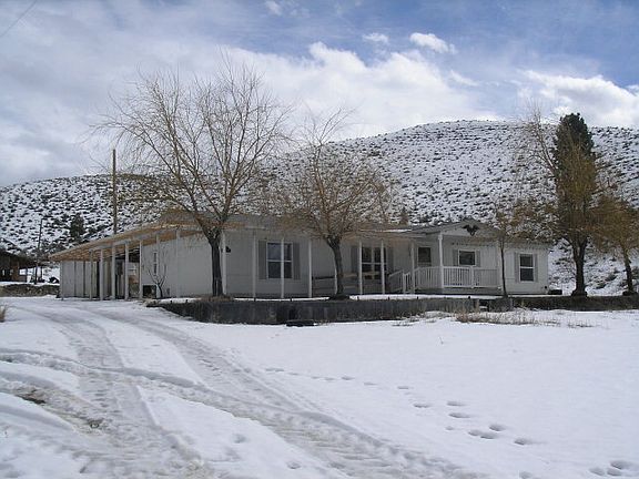 Great Price! Newer manufactured home on a full perimeter concrete foundation with 1728 sq. ft, 3 bedrooms, 2 baths, covered deck and outbuildings on 35+ acres that borders BLM! Outbuildings include loafing shed, hay barn, workshop, chicken coop and storage sheds. A water right for 2 acres is included. Loads of room to roam! Some elbow grease needed for clean up.