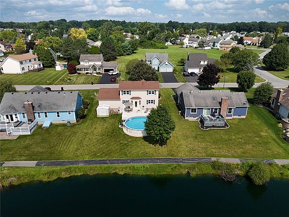 Welcome to this beautiful home in the highly sought-after Wellington Ponds community! Enjoy the ultimate backyard oasis featuring a spacious deck, an above-ground pool, and direct access to a serene neighborhood pond with walking paths—perfect for relaxation and outdoor activities. This home is designed for convenience with two downstairs bedrooms, ideal for those seeking first-floor living or a home office. The upstairs offers spacious bedrooms with full baths on each level, providing ample space for everyone. The kitchen offers plenty of great storage and prep space. Nestled in a walkable neighborhood with three picturesque ponds, and just minutes from Chili-Paul Plaza and Wegmans, this location combines tranquility with convenience. Don’t miss out on this incredible opportunity! Delayed Showings/Negotiation. Showings begin 08/20/24 at 10am. Offers to be submitted on 08/26/24 by 10am and good until 8pm. Appraiser has verified the total square footage at 1783.