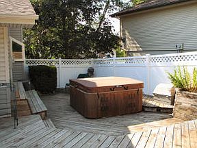 Very well maintained home w/ NEW roof & windows! Nicely landscaped lawn w/ a huge deck w/ built-in bench seating, hot tub & fence for privacy, updated master bath w/ tiled shower, eat-in kitchen w/ a garden window, formal dining room, large wood-burning fireplace in family room surrounded by built-ins, office/craft room, cedar closet, lawn sprinkler system & maintenance free permanent siding.
