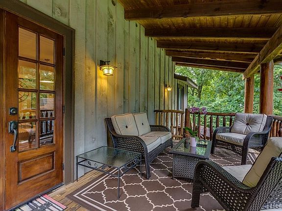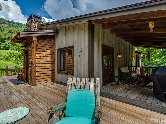 SOLD FURNISHED with a few exceptions* MOVE-IN-READY A perfect VRBO - NO HOA restrictions. Near downtown Highlands. The open concept living, kitchen and dining combination is what everyone is asking for.The fireplace and stone work create a beautiful focal point. Maple cabinets in the kitchen and 80+ year old reclaimed floors in the living area. Just off of the living area two guest bedrooms and a guest bathroom. The lower level opens to the owner's suite which is private with heated floors in both the bedroom and bathroom. The master features a walk-in closet, a den/office and laundry. The locust post railing deck is both open and covered, wrapping around three and a half sides of the home with access from the foyer, living room, dining room and one of the guest bedrooms. The hot tub is nicely hidden on the back side. Other features: a single car garage, raised garden beds in the back yard, a large outbuilding that can be used for: a work shop, artist studio, children's play area. The property also has: attractive stonework and landscaping, gravity fed spring water and a lovely view of the neighboring meadow. Being sold furnished with a few exceptions. Only a 7-9 minute drive to downtown Highlands and minutes to several popular outdoor hiking, river and waterfall spots.