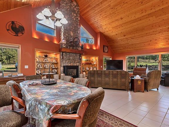 Two for the price of one! Live your dream at this Colorado Ranch Homestead established 1885. The main home was custom built in 2005 and features a beautiful Great Room with a tongue and groove vaulted ceiling and an impressive floor to ceiling rock fireplace. Main level master bed room walks-out to the deck, has 5 piece bath, jetted tub, zero threshold shower &walk-in closet. 2 more bedrooms and loft/office on upper level. The kitchen has a gas cook-top,& S/S appliances. 4 car garage has tall RV bay,work areas,bathroom & upper level studio. Back up Generac Generator included.The homestead house has original river rock fireplace, w/5 bedrooms, full bath and kitchen. Another 2 car garage, 2 barns with hay storage, a corral and your own cave. Room for your family friends. Lush 36.8 acres of pasture with two ponds. Fenced& cross fenced with 4 mile creek running through it. Surrounded by red rock outcroppings. Well allows for use inside not more than 3 single-family dwellings watering poultry, domestic animals, livestock and irrigation of up to 1 acres of gardens/lawn. Septics recently pumped, HVAC service just completed, roof cert. will be provided. Into Astronomy Florissant Fossil Beds National Monument has been recognized for its starry night skies by the National Park Service and the International Dark Sky Association. Don't miss seeing this home. It has too many extras to list.