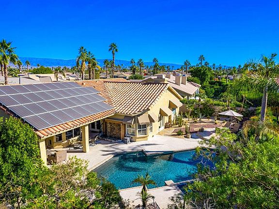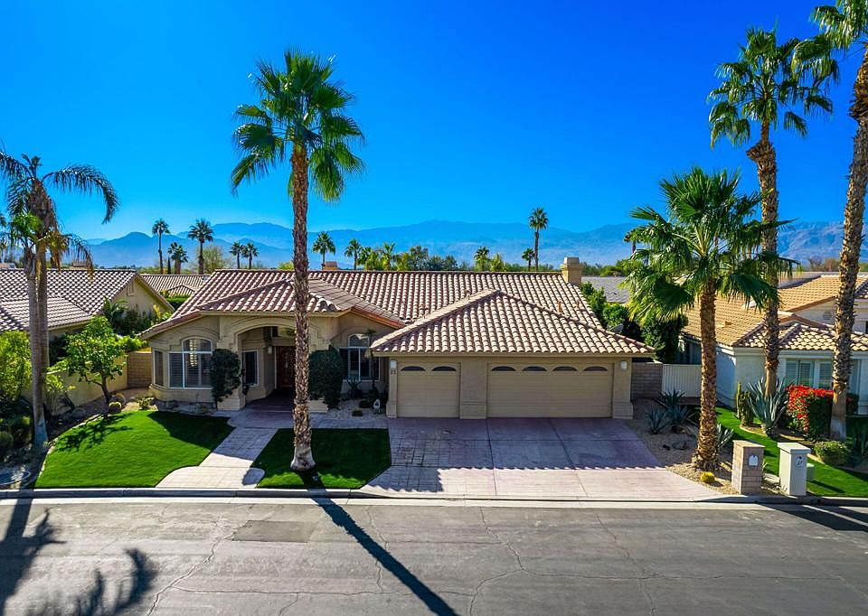 Welcome to 25 Covington Drive, a meticulously maintained pool home located within the prestigious guard-gated community of Montecito in Palm Desert. This energy-efficient home includes paid solar and backyard xeriscaping for minimal water usage. Expansive windows invite natural light in and showcase the stunning desert scenery, creating a bright and airy atmosphere. The home features an open concept kitchen that opens to the great room with a fireplace and high ceilings. Four bedrooms and three bathrooms offer space to host family and friends. One bedroom can be used as flex space and is currently being used as a home office. The primary suite boasts a walk in closet, newly remodeled bathroom with a double sided fireplace. This thoughtfully designed home embodies our desert lifestyle, where indoor outdoor living celebrates the beauty of the surrounding environment. The garage has a two car garage plus a golf cart garage. Low HOA of $270. Close proximity to grocery, restaurants, Eisenhower Hospital, Desert Willow Golf Course and the Desert Springs Marriot. Furniture available outside of escrow.