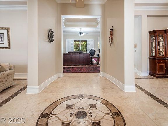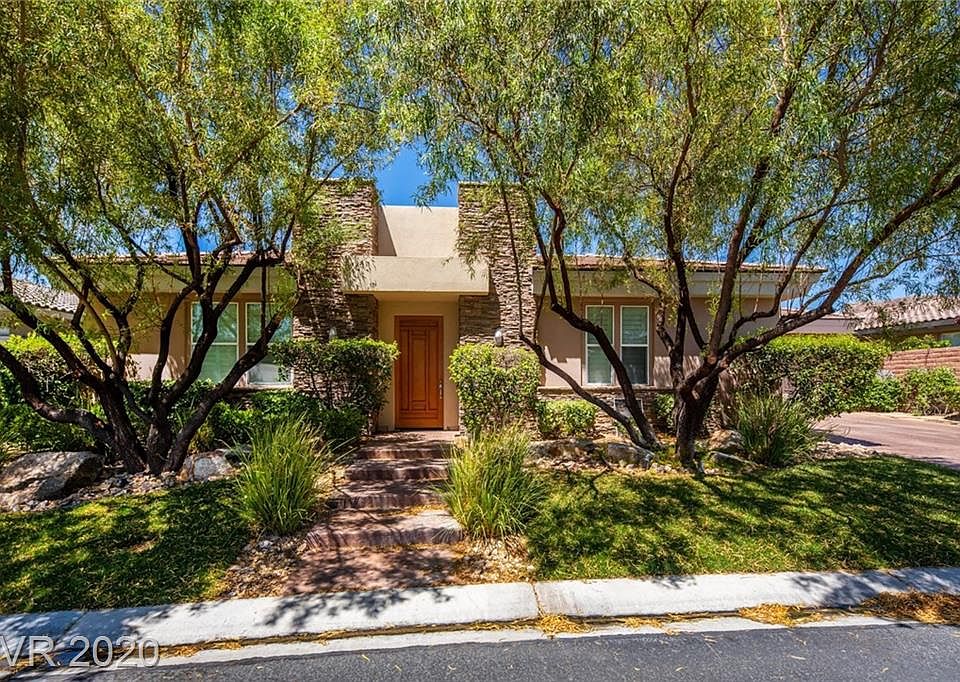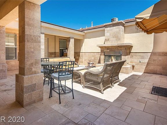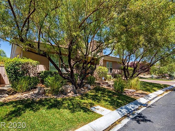 The best priced in Topaz Ridge Absolutely stunning single story home in the exclusive guard gated Summerlin community of the Ridges, 4 bedroom 4 1/2 bath casita, situated on a tremendous lot, backyard offers large sparkling pool and spa with fountains and outdoor kitchen. Interior amenities feature exquisite travertine flooring, kitchen with stainless steel Appliances and refrigerator, granite countertops and Butler's pantry, Formal dining room with wine room finished in floor to ceiling travertine tile. secluded master bedroom with large jetted tub and walk-in closet. 3rd car garage is currently used as a full guest suite kitchenette. Great location near shopping dining and entertainment makes this property a must see.