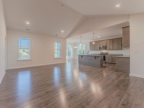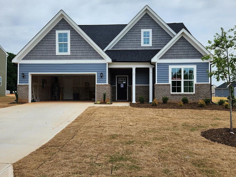 Excellent ranch house! Almost 1800 sf. Beautiful open plan, feels huge. Vaulted ceiling in family room, huge block kitchen island. Tons of cabinets. Covered front and back porches. LVP throughout the living areas. Granite in the kitchen, quartz in the bathrooms. White cabinets, antique bronze knobs, pulls, and hardware throughout the home. Large, flat back yard. 80' wide lots! Beautiful house!