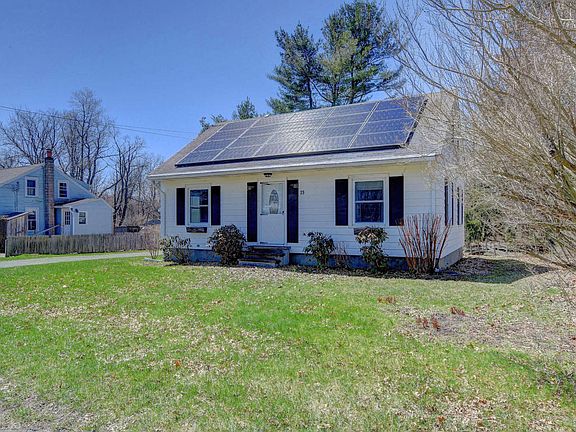 This pretty updated and renovated Cape style home has so much to offer. The kitchen is tastefully done with a beautiful tile floor. The main floor bathroom boasts newer commode and pedestal sink. It is freshly painted. Large main floor bedroom if you don't want to do stairs. The formal dining room with builtin china hutch and sliders to the deck have beautiful wood floors, as does the living room. The home has solar on the roof and is transferable to a new owner. A nice back deck, one car garage and flat backyard make this a great buy!