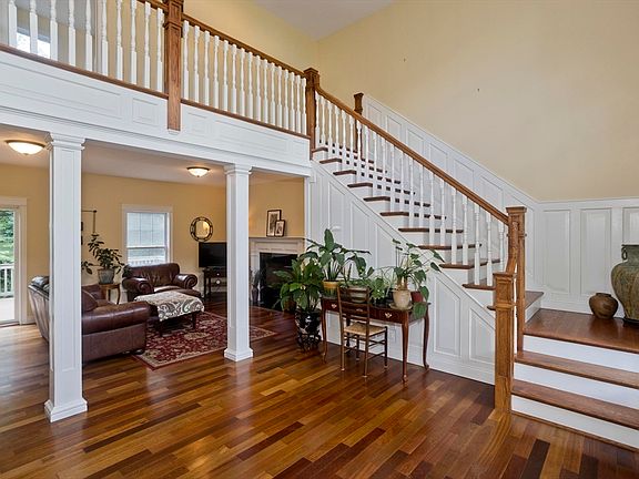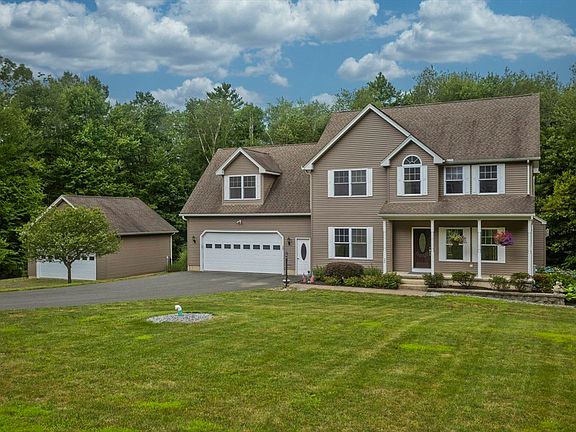 OFFER DEADLINE 7/15 @ 5PM. Offer response: 12PM on 7/16. Welcome home to this spacious 3-bedroom, 3.5-bath Colonial nestled on over 5 acres! A dramatic 2-story foyer welcomes you with beautiful wood floors that flow through the dining room, complete with wainscoting & French doors. The eat-in kitchen impresses with a walk-in pantry, tile floors, and a large 2-tiered island, perfect for entertaining. The living room features a cozy gas fireplace. Upstairs, the oversized primary suite boasts two closets and a luxurious bath, while two additional bedrooms share another full bath. Enjoy a fully finished walk-out basement with extra-tall ceilings & full bath—ideal for guests or recreation. An additional 2-car detached garage completes the package. Central A/C, forced air heat, and plenty of privacy make this home a must-see! Showings start at our open house this Saturday July 12th from 2:30-4:30PM