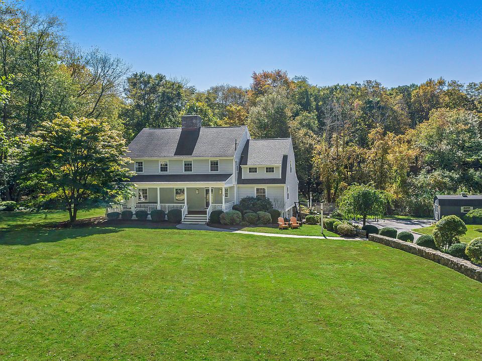 Welcome to 25 Deer Hill Drive - Prime South Ridgefield Location! Perfectly sited on +1.4 level acres on a quiet cul-de-sac on the NY/CT border, this turn-key Farmhouse Colonial offers the ultimate combination of privacy, convenience, and outdoor fun-just minutes from town. Beautifully landscaped grounds complete with a zip line & treehouse, creating endless opportunities for play+ relaxation. Walk inside the inviting Foyer to the LR with built-ins and wood-burning FP which opens to a sun-filled DR w/pocket doors to a sensational, updated Chef's Kitchen featuring an oversized island, Sub-Zero Refrigerator, Bertazzoni Gas Range, Wall Oven, Stone Counters, Wine Fridge + Pantry. The adjacent Sunroom/Breakfast Room w/walls of windows & doors to the Deck + Stone Patio w/Fire Pit overlooks the expansive yard. Spacious Family Rm w/gas Fireplace & built-ins, plus a main-level Office w/custom millwork, complete the main level. Upstairs offers 5 Bedrooms + 3 full Baths, including a serene primary suite w/double closets, custom storage, spa-inspired bath w/steam shower. Finished Lower Level adds 750 sq ft of versatile living space. Add'l highlights include: newly installed Hardwood Floors throughout Main Level, New Main Staircase, New AC Compressor, Car Charger, Whole-House Generator and Energy Efficient Solar Panels. Easy commute to Katonah Train Station - approx. 1 HR to NYC. Rare opportunity to own a truly special home in one of Ridgefield's most sought-after neighborhoods.