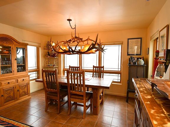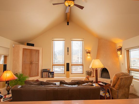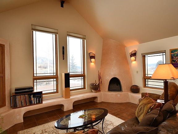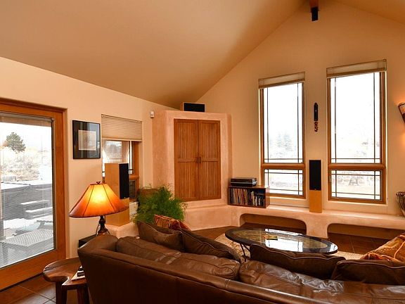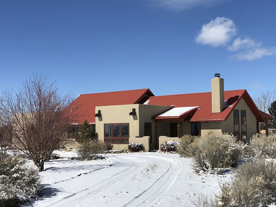 HAPPINESS IS: An energy efficient, light filled 2,128 sq. ft., gem of a home with 3BR/2BA and heated garage. A metal pitched roof. (While friends and neighbors are shoveling their roofs and fixing leaks you'll be out hanging on the slopes or enjoying your hobbies) Easy access on a county road in Upper Colonias in between town and Taos Ski Valley. Stunning mountain views. Cozying up to a sculptured corner kiva fireplace in the high-ceilinged living room with a cocoa or cognac watching the snow fly. Cooking for a crowd or a couple in the deluxe kitchen with cherry wood cabinetry echoing the look of built in furniture complete with pantry. A spacious master suite and bath with both steam shower and soaking tub. A place for guests. A place for your office. A place for your pets - a catio or "doggio". Places to sit and watch the sunset or sip your coffee. A hot tub to destress and star watch. Beautiful, established landscaping with drip irrigation. Are you smiling yet? The low utility bills should do it. Don't worry. Be Happy!