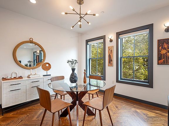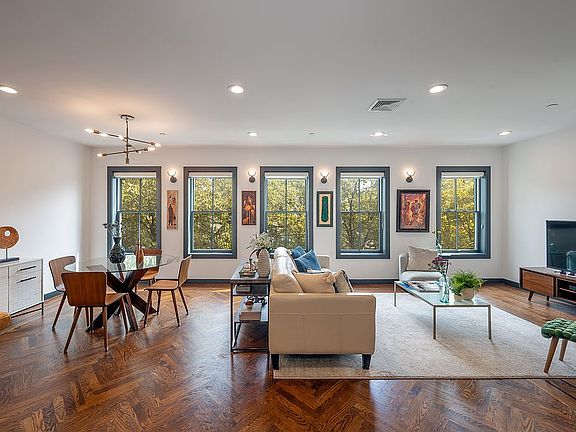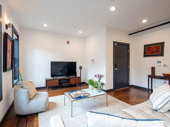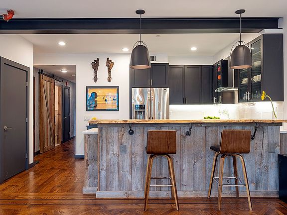 Tucked away in a quiet corner of Downtown and within a few blocks to the best of what Jersey City has to offer, this spacious and marvelously designed Three Bedroom condominium completed in 2017 features Two Bathrooms, a home office and a Private Deck. The exquisite blend of old-world aesthetic and modern materials creates serene and sumptuous interior spaces. The stunning living room in grand proportions is appointed with no less than five oversized windows facing east and lavish herringbone pattern hardwood floors. The beautiful kitchen is furnished with stainless steel appliances, custom cabinetry, Caesarstone countertops, undermount lighting and a peninsular built with reclaimed wood panels and live-edge countertop. Both bathrooms are adorned with marble and porcelain tiles, thermostatic control showers and rain showerheads. The west-facing outdoor deck is an ideal place to unwind at the end of the day. The immaculately maintained residence further features Central AC and Heat, washer and dryer, abundant storage and high ceilings throughout. The intimate boutique condominium offers an elevator, an exercise room and storage. Uniquely located just a few minutes to both Grove Street and Journal Square PATH Stations, 4 blocks to the historic Hamilton Park, a stone’s throw to Mary Benson Park and surrounded by countless renowned restaurants, cafes, shops, schools and entertainments, this move-in ready offering is a rare find.