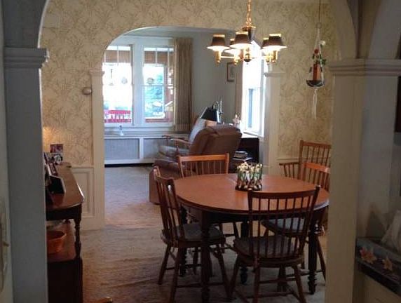 5 rooms all on one floor with enclosed front porch. Lr 25' X 12' with fireplace and built in bookshelves. Dr 11.5' X 12' Kitchen eat in. 16' X 11' Master bedroom 12'X 10' with 2 closets 2nd bedroom 11.5' X 11' Crown molding in all the rooms Archways between kitchen, living room, and dinning room. One car detached garage. One block from beach.