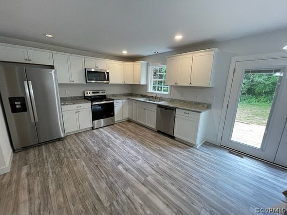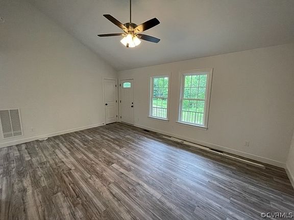Beautiful new rancher offering country living at its best! Ready to move right in! Front porch and rear deck to enjoy the peaceful and scenic 3+ acres. Beautiful blend of wooded privacy and open space to enjoy the outdoors. Plenty of room for gardening, pets and outdoor activities. The home has a lovely open floor plan with vaulted great room opening to the spacious eat-in kitchen with granite counters and stainless appliances. The dining area has access to the rear deck, perfect for grilling. The split bedroom plan offers private primary bedroom on one end of the home with full bath and large walk-in closet. There are two additional bedrooms and full bath on the opposite side of the home. The mud room has washer and dryer hookups and lots space for storage. Lots of natural lighting as well as recessed lighting in the kitchen. The home has easy maintenance laminate flooring throughout. FIRE FLY BROADBAND INTERNET AVAILABLE PER CENTRAL VA ELECTRIC COOPERATIVE.