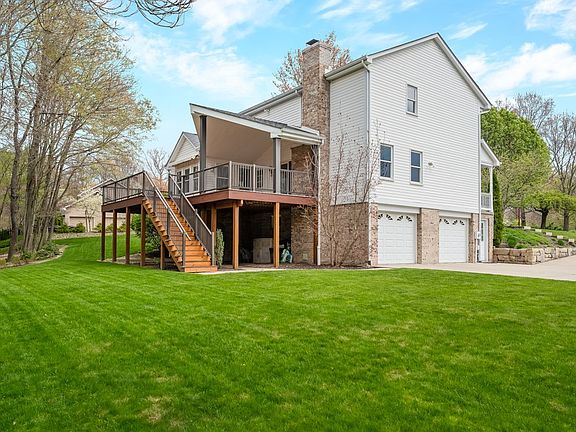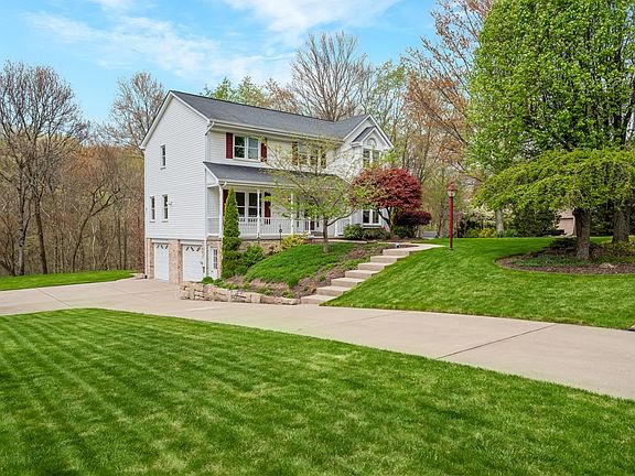 Park Like Setting! This charming home is located on a peaceful cul-de-sac and boasts mature trees, offering plenty of privacy. As you approach, you'll be greeted by an inviting front porch, perfect for relaxing with your morning coffee. Step inside to discover hardwood floors throughout the main floor. The updated kitchen is a chef's dream, featuring soft-close cabinets, a stylish backsplash, and a breakfast nook flooded with natural light from the abundance of windows. Gather with family and friends around the cozy log-burning fireplace in the family room, or entertain with ease in the spacious living room. Finished lower level offers even more space to relax and entertain, with a walk-out to a patio where you can enjoy the beautiful surroundings. Other features of this wonderful home include a nature stone floor in the garage, a covered composite deck perfect for outdoor dining or relaxing, and a shed with a loft for extra storage. Leaf filter with transferable warranty.