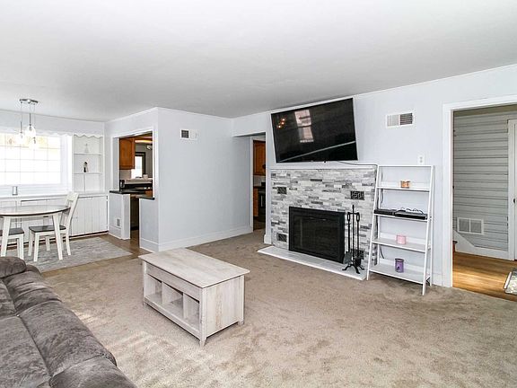 Accepted offer , no more showings. Set on a knoll this 3/4 bedroom cape has a lot to offer. Open plan showcasing a beautiful living room with a beautiful stone wood burning fireplace. The updated kitchen with stainless steel appliances is the center of the home. The first floor bathroom has been totally updated and has radiant heat. Additionally there are 2 good sized bedrooms and a storage room which goes to the fenced in private back yard. Upstairs you will find an additional 2 spacious rooms and a 1/2 bath. Outside is an over sized 2 car garage with additional storage. Recent upgrades include: 200 Amp service, a new roof with a water proof membrane, Fire guard on the chimney, New heating and cooling systems, foam board in the attic, new hot water heater, and a radon mitigation system. Conveniently located this home is sure to please.
