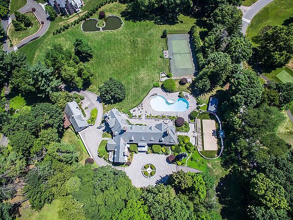 Doubling Manor, one of the true Greenwich Great Estates, a unique architectural style inspired by European mansions of the eighteenth and nineteenth centuries with commensurate size and scale at almost 10,000 square feet with 9 bedrooms and 7.3 baths. Separate guest home with 2 bdrms & 2 baths. Remarkably bright and airy accommodation, this estate is the best of its class. Nestled in the heart of mid-country Greenwich, overlooking perfect vistas of beautifully landscaped 6.5 acres abutting Greenwich Country Club. Luxury outdoor amenities throughout the sprawling lower lawns including incredible oversized terrace, custom pool with spa and fountain features, fishing pond, and various sports courts including tennis/basketball, volleyball and shuffleboard.
