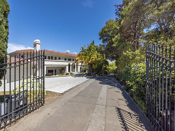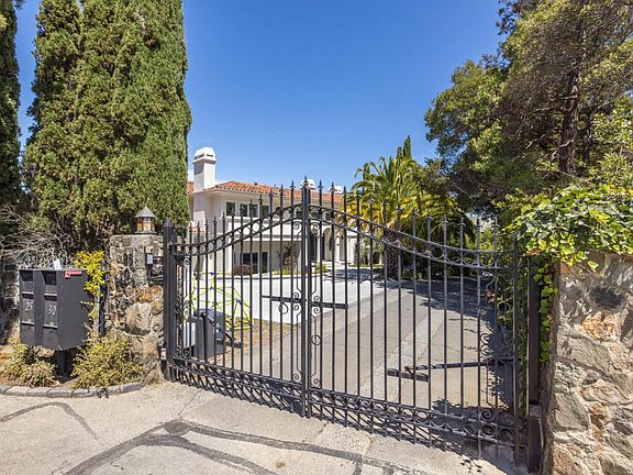 This exquisite home with views of SF Bay is truly a gem! Bordered by magnificent trees, set on a gorgeous, private lot with strikingly beautiful pool and garden. Gorgeous Mediterranean home tucked away on a private gated Hillsborough lane with sweeping Bay and City views from nearly every room. Excellent for entertaining with multiple gathering spaces, media room and a beautiful backyard patio, pool and spa. Luxurious master suite with oversize his-and-hers walk-ins and a marble-appointed en suite bath. Enjoy gated privacy. This home also benefits from minutes-away proximity to downtown San Mateo or Burlingame, as well as highly regarded public and private schools in Hillsborough.