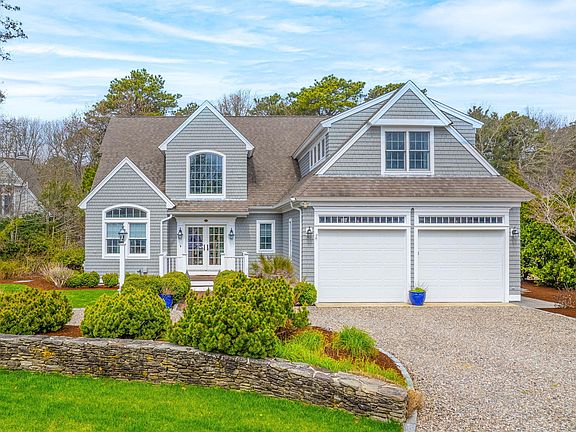 Tucked away on the quiet side of New Seabury is the beautiful New Seabury Village of Little Neck Bay. This village of 150 homes, is nestled between Jehu Pond and Great River with waters views from nearly every street as you drive through with South Cape Beach just down the road. This picturesque and inviting home with lovely curb appeal has just come on the market. Step inside and make yourself comfortable relaxing in the sun drenched LR with doors leading to the expansive deck and patio. Enjoy some peaceful reading in the 3 season sunroom just off the dining area. A recently remodeled professional gourmet kitchen that includes custom cabinets, Viking Appliances, and Kohler upgrades. Also on the first floor is an office/den area just off the main entry, laundry and mudroom area just off the garage, as well as a sizable primary suite complete the first floor. Upstairs you will find another bedroom ensuite, as well as 2 additional bedrooms and a hall bath. Outside, make use of the large deck area and sizable brick patio where all can enjoy a wood burning fire. Rinse off in your outdoor shower after returning from the beach.