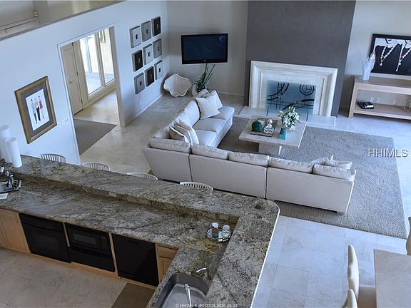 HH Island's Gold Coast-Imagine waking to the sun rising out of the Atlantic or strolling the sugar-white sand beach watching sunrises & sunsets. Direct oceanfront home w/its own private boardwalk to the beach & private dock. Open floor plan was ahead of its time w/the LR, Kitchen & DR all open & under a soaring high ceiling. Private htd pool & grassed back yard. Split BR plan, 5 BR, 4.5 BA plus 2 dens. High ceilings, tiled floors, granite tops, & unique Master Suite w/private getaway loft sitting area. Has only been used as a 2nd home but could do very well as a Vacation Rental or your place to call home. Welcome to the beach,you deserve it!