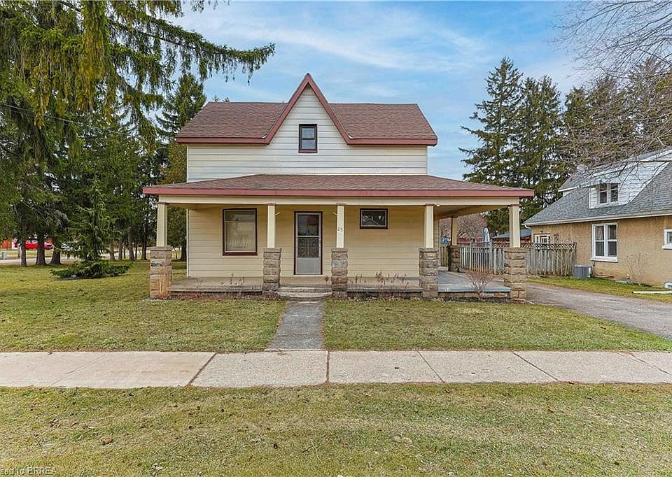 Welcome to a charming family home nestled in the heart of Burford, ON, a quiet and friendly town central to both Woodstock and Brantford. This lovely property, having been in the same family for over 50 years, offers a perfect opportunity for those looking to make a house their own while building equity. Situated on a large, private .33-acre lot, this home boasts over 1,500 square feet of living space, providing ample room for a growing family. The main floor features 3+1 bedrooms, 3 piece bath and convenient main-floor laundry—ideal for busy families. The extra bedroom is a fantastic bonus, offering flexibility as a guest room, office, or playroom. The home's character shines through with its classic features, and it's just waiting for someone to bring it into the modern age with some personal touches and sweat equity. The large windows allow natural light to fill the rooms, and the spacious layout offers endless potential for customization and renovation. Outside, the property offers a detached 2-car garage, providing both parking and additional storage space. The mature trees on the property offer privacy and shade, enhancing the tranquil setting. This is the perfect home for those who love the charm of a rural community but want to remain centrally located. Burford is a peaceful town, ideal for families or individuals seeking a slower pace of life. With just some short steps away, you'll have easy access to amenities, schools, shopping, and parks. Whether you're a first-time buyer, growing family, or someone looking to invest in a property with incredible potential,25 Dufferin Ave is a must-see! Don't miss your chance to make this house your forever home.