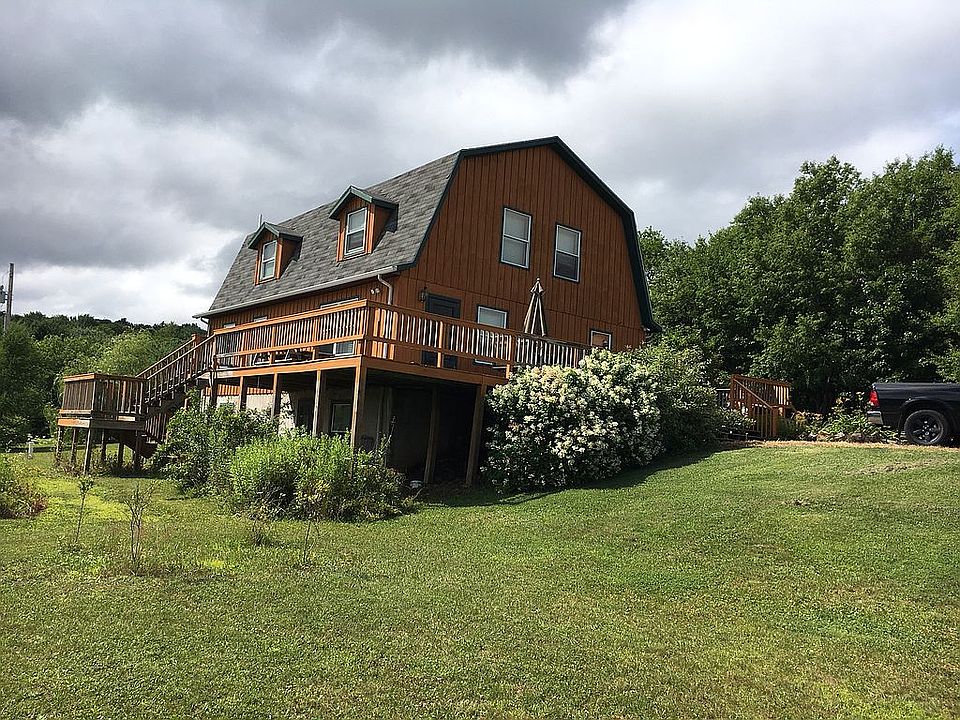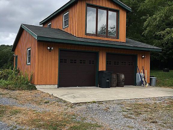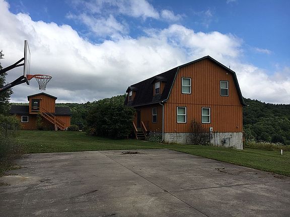 Gambrel Style Home with large 2nd floor loft area. Master bedroom and bath. Four bedrooms and three full baths. Custom rustic pine ceilings and railings. Tile floors throughout. Radiant and baseboard heat. Basement is 75% finished w/ full bath, laundry room, three large rooms and ample storage. Natural Gas appliance ready. High speed cable TV/ Internet ready. Rough cut Hemlock siding and large wrap around wood deck. The two-car detached garage has a large room above with outside entrance. There are small outbuildings along with a poured concrete basketball (1/3) court. Private well and septic mound system. No Mineral Rights. The very large property has plenty of space to play with ample privacy. In the Coudersport School District