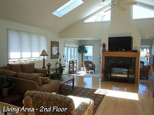 Fantastic Beachblock upside down style home featuring 4 bedrooms and 4 full baths. First floor features 3 bedrooms, 2 full baths and laundry room. Second floor features a spacious great room with vaulted ceilings, gas fireplace, sun room which is bright and airy, kitchen with center island, dining area, master bedroom with private bath and large deck overlooking the beautiful inground swimming pool. Property also features a third floor roof top deck with fabulous ocean views.