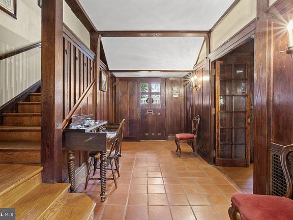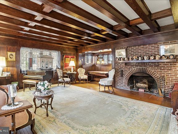 Welcome to one of Merchantville’s most beautiful and unique homes! Named “Nethusa” for the combination of Dutch and American design, it was custom-built in 1909 with state-of-the-art amenities for a top executive of the Victor Victrola Company. This 5 Bedroom, 2.5 Bath residence has been lovingly and meticulously maintained over the last century plus and the pride of ownership shines throughout. The tiled center foyer entry with closets and half bath leads into the expansive and impressive formal living room with large brick fireplace, built-in shelving and bench, exposed beams and a dining alcove with built-in seating and table. The formal dining room features a fireplace, built-in sideboard and double china closets, and a warming cabinet connected to the Eat-In Kitchen. The kitchen features a granite countertop, built-in hutch, pantry closet, dumbwaiter to the basement and an alcove. The Family Room has been enlarged and has a corner gas fireplace and overlooks the brick patio and lovely yard and gardens. The second floor features a huge Master Bedroom with sitting area, private bath, 3 closets, a nursery room and an enclosed porch. A second bedroom, used as a sitting room, features a fireplace and balcony overlooking the yard. A full bathroom and an additional bedroom complete this floor. The third floor has two ample bedrooms, an abundance of closet space and a “hidden” children’s playroom. A huge basement and attached garage provide additional storage space to the numerous closets (23!) in this home. Located on a tree-lined street, the property is conveniently located within walking distance to downtown shopping and dining, schools, parks and churches; and just minutes driving to the Philadelphia bridges. Property is being sold in as-is, but excellent condition. This truly is a one-of-a-kind home and was once featured in “Country Life In America” magazine! It needs to be toured in person to appreciate all of the amenities, too numerous to list, that this property boasts.
