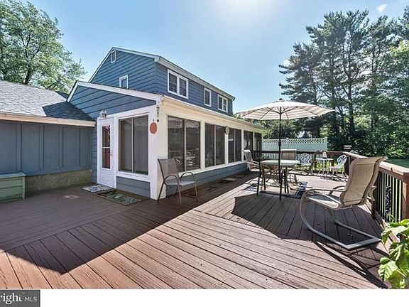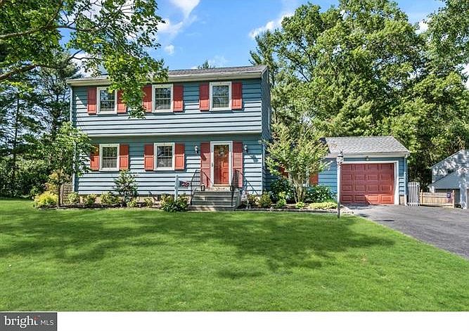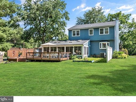 A few blocks to Main Street in Moorestown, in the desirable Valley Stream neighborhood, is a private scenic corner lot of .46 acres boasting an updated Colonial! Newer features include Replacement Roof in 2017, Sump Pump in 2015, Heat and AC in 2010, with Electric Panel in 2002. Updated Kitchen with classic white Shaker cabinetry and Corian countertops plus refinished Hardwood floors throughout! Adjoining the kitchen to the Sunroom is the office, which was the original breezeway in the colonials of this neighborhood. Relax and enjoy the views from the Vaulted Four-Season Sunroom (25 x 14) with skylights and a Gas Fireplace opening to the spacious back deck overlooking well kept back and side yard. Mature landscaping and fencing provide privacy out back with plenty of room for a pool. Living Room with a Wood Burning Fireplace and Formal Dining Room round out the main level with the crown molding and chair rail moldings. Upstairs the master bedroom features a dressing room with ensuite three piece bath with updated toilet, stall shower and ceramic floors. Rounding out the upstairs are two more good sized bedrooms with great closet space and the full hall bath with updated toilet and ceramic tile floors. All wallpaper was removed and tastefully painted in neutral American tones; all hardwoods were refinished to a luxurious shine, too. Downstairs is a partially finished retro basement with cemented crawl space and laundry room. Excellent location near award winning doctors, schools, great shopping and restaurants too - come and see all this home has to offer you!