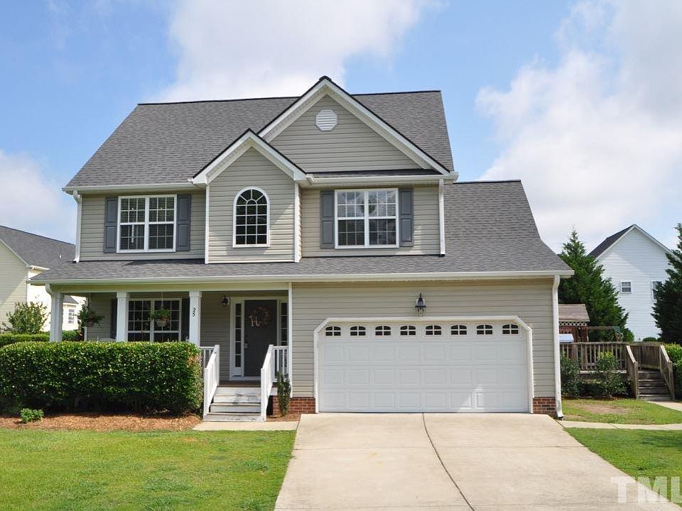 LARGE CORNER LOT IN WOODFIELD! 3BR/2.5BA home, 0.69 acre corner lot, rocking chair front porch, entry foyer, formal dining room w/wainscoting, bright spacious kitchen, breakfast room, family room w/gas log fireplace opening to side deck area, large master bedroom w/sitting area and master bath w/garden tub, large secondary bedrooms. Easy access to Wake Forest! 10 minutes to grocery store! NEW ROOF AND BACK WINDOWS IN 2015!