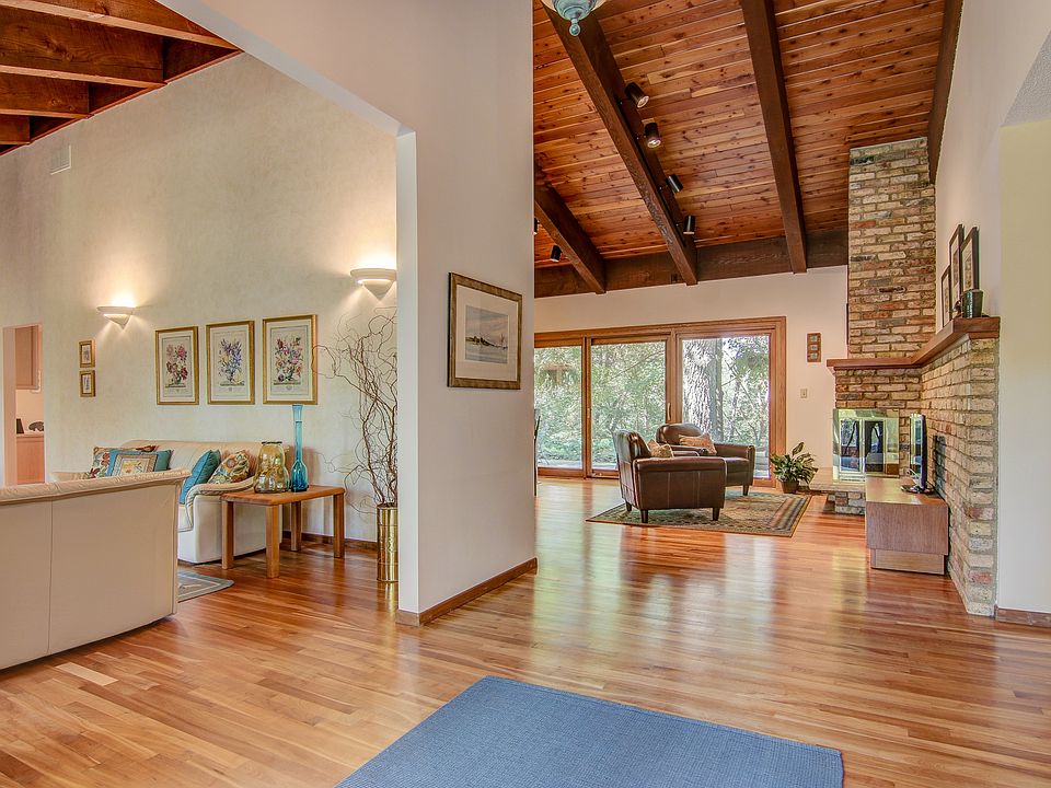 You'll be impressed the moment you enter through the front door of this beautiful, meticulously maintained home. Once inside, you will discover architectural details throughout, along with main floor living at its best. Enjoy entertaining in the open floor plan with rooms that seamlessly flow into one another. Sky lights and vaulted ceilings make these spaces feel spacious and airy while the natural woodwork throughout the home give a warm and cozy feeling. Ideal main floor master with private bath makes for the perfect retreat. Enjoy the convenience of main floor laundry. This home features 3 fireplaces, natural American Cherry hardwood floors, new triple pane Pella windows, zone heating, and more! Come discover all what this home has to offer.