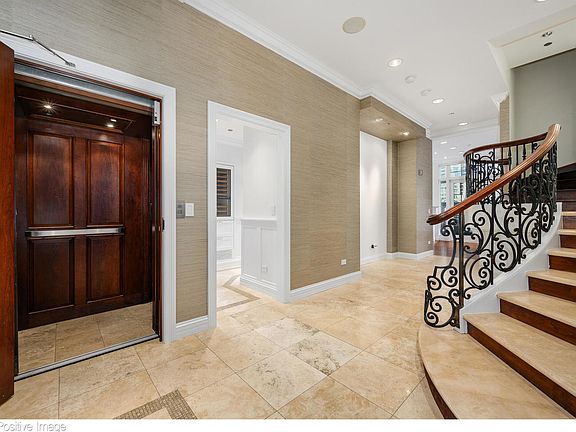 Experience elevated city living in this extraordinary townhome in the sky at The Fordham, one of Chicago's most prestigious full-service luxury condominium buildings. Perfectly located in the heart of downtown Chicago, just steps from Michigan Avenue, Lake Michigan, and the city's best shopping, dining, and cultural landmarks, this rare 5,000+ SQFT corner residence offers the privacy of a single-family home combined with the security and amenities of a high-rise. Drive directly into your private two-car garage, a true rarity in Chicago luxury real estate, and take your private elevator which opens directly into your home. With south, east, and west exposures, this residence showcases panoramic skyline views and captures the very essence of luxury city living. Spanning three levels, this 5-bedroom, 3.1-bath home provides expansive spaces for living, entertaining, and remote work. The main level features heated floors, soaring ceilings, and an open concept living and dining area anchored by a double-sided fireplace. Step out onto your private, 443 SQFT terrace, which spans the length of the home. This space is perfect for indoor-outdoor entertaining. The chef's kitchen is equipped with Wolf, Sub-Zero, and Asko appliances, granite countertops, a breakfast bar, wine refrigerator, and walk-in pantry, ideal for those who value both design and functionality. A sun-filled home office with dual exposures and a powder room complete this level. The primary suite defines modern luxury living in Chicago with a fireplace, bay-window sitting area, spa-inspired bath featuring a steam shower, jetted tub, dual vanities, and heated floors, along with a walk-in closet and two additional wardrobes. A secondary bedroom nearby is perfectly suited for a nursery, dressing room, or additional office. The upper-level hosts three spacious bedrooms, two of which share a Jack-and-Jill bath with heated flooring, a jetted tub, and a separate shower, all with custom-organized closets. Two laundry rooms, elevator access on every level, and abundant storage add everyday comfort and ease. Ownership includes two additional parking spaces, a private wine locker, and access to an exclusive cigar lounge with humidor. Residents of The Fordham Chicago enjoy world-class amenities: 24-hour door staff, onsite management, indoor pool, fitness center, rooftop deck, theater room, saunas, bike room, and dog run. This is truly a one-of-a-kind Chicago luxury residence, ideal for discerning buyers seeking a downtown townhome with a private elevator and garage, offering unparalleled privacy, sophistication, and convenience in one of the city's most coveted locations. Property is being sold "as is."