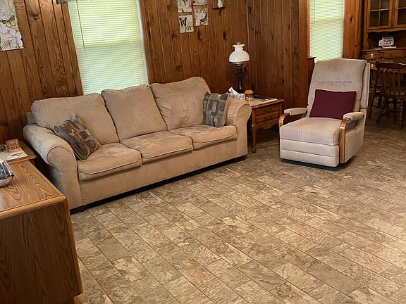 Awesome home close to river with lots of amenities. Home features 3-BRs, 2 full baths, great room, dining area, kitchen & tons of storage space. Huge, covered front porch. Room to store boat in detached garage. Screened area attached to garage, ceiling fans in all rooms. Fenced in backyard. All furniture remains with home.