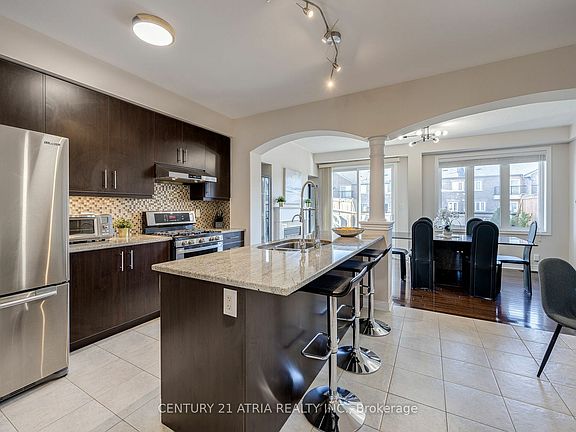 Immaculate 4 Bedroom, Double Car Garage, Freehold Townhouse Built By Monarch Homes! Situated On A Quiet Street, This Bright & Sunny Home Offers An Open Concept & Well Thought Out Floorplan- A Spectacular Home For Any Family. Boasts; 9 Ft. Ceilings On 2nd Level, Hardwood Floors Throughout, A Spacious Ground Level Bedroom With Walk-In Closet & 4 Pc Bathroom- the Perfect Set-Up For In-Laws Or Nanny. Huge Finished Laundry Room With Tons Of Storage & Countertops. Open Concept Kitchen With Walk-Through Butler's Pantry, Granite Counters & Centre Island Breakfast Bar. Large Family Room & Dining Room /W Walk-Out To an oversized Sunny South Facing Balcony. Parks 6 Cars Total, A Must See Home! Fantastic Location - Minutes To Hwy 404, Parks, Restaurants, Amenities & Within Victoria Square P.S Boundary.