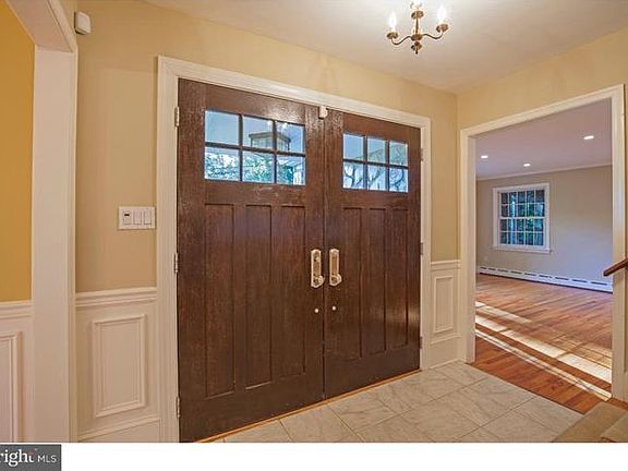 THIS HOME HAS IT! Modern meets traditional! 4 bedroom, 2.2 bath beautifully updated Colonial in Doylestown Boro! Walk to town location! Charming Flagstone walkway leads you to a very welcoming covered front porch with dramatic wood front double doors where its a pleasure to greet your guests! Enter into cozy foyer with ceramic tile floor. Look to your right and notice the formal dining room with wainscoting. The Stunning Chefs gourmet kitchen will "WOW" you with white Allmilmo cabinetry, gorgeous granite counter tops including a 10.5' Island with prep sink, Sub Zero refrigerator, Wolf 4 burner convection oven with griddle, Dacor wall oven, wall microwave, built in mini beverage fridge, Miele dishwasher, Miele built in cappuccino maker and more! Hardwood floors throughout the home! Open kitchen to family room w tile surround fireplace trimmed with wood mantle, wonderful glass doors leading out to enclosed covered porch overlooking huge half acre + backyard with mature trees and lots of character! Family Room also opens to spacious living room with bay window looking onto the gardens in the front yard. First floor powder room. Lots of ideas will come to mind as you look around and feel the great energy in this space. Heading upstairs is the master bedroom with walk in closet and full updated master bath w marble tile floor and stall shower with subway tile and glass doors. 3 secondary bedrooms and updated hall bath complete the second level. The lower level is finished with brand new flooring, laundry room , 2nd powder room and storage area. Lots of updates including electrical and Energy efficient Buderus Gas Boiler. 2 car garage. Hardi-plank, stone and brick siding. Beautiful lot with Stone retaining walls and large driveway with ample parking. Enjoy Doylestown Boro and all it has to offer! Grab this before its gone! MOVE-Right-In. Ready Now!!!