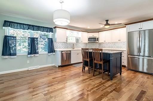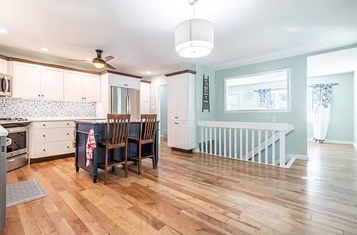 Come check out this well maintained ranch sitting on a cul-de-sac with many recent updates! The new updated/upgraded kitchen was just expanded with new hardwood flooring, New Stainless Steel appliances, Granite Counters and Upgraded soft close drawers/cabinets. The rest of the first floor also has Hardwood flooring that was replaced in the past 3 years. The Full bath has also been renovated which features a vanity with a Granite Counter, Tiled shower & a Skylight to provide natural lighting. Also on the first floor are 3 bedrooms all with Hardwood flooring. The Finished Basement has a bath with laundry hookups plus two large finished rooms both with full windows. From the kitchen you have access to the Sunroom which leads out to the Wood Deck and Fenced back yard. Within the past 2 years the FHA Furnace and Hot Water tank were replaced while 9 Vinyl Replacement Insulated Windows have been replaced in the past 3 years. Lastly, the Roof was just replaced in the past 2 years.
