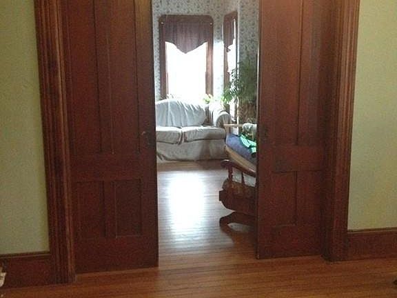 Old World charm in this in-town Victorian located on a dead end street. The lot is large with fruit trees, mature plantings and there are two enclosed porches to enjoy the view. Inside you will find refinished maple floors and untouched original natural woodwork. Home features include an eat-in kitchen, formal dining room with pocket doors, first floor bedroom, front and back staircases and a walk up attic. Plenty of room inside and out!