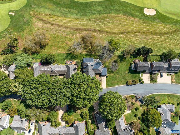 Located in Ednam Village, overlooking the Birdwood Golf Course and walkable to the Boars Head Resort this is a truly magnificent offering. One of the few stand alone homes in the maintenance free neighborhood, the property is sited adjacent to a protected side lot adding to an already private setting. The exterior boasts exquisite architectural details including brick arches designed after the UVA Pavilion. Comprehensively renovated by a professional designer with classic and timeless finishes each room flows seamlessly into the other. A grand two story foyer leads into a formal living room with wood burning fireplace, dining room with floor to ceiling windows and hidden storage for fine collectables and a private den with fireplace and built-in bookshelves. A gourmet kitchen with custom painted cabinetry, marble tops and a large island opens to a cozy sitting room with gas fireplace and dry bar. A first floor master suite allows for one level living. Two large bedrooms are located on the second floor and enjoy mountain views. Best of all is a light-filled sunroom that spans the length of the home with brick floors and large windows plus a private terrace that overlooks the golf course and distant mountains.