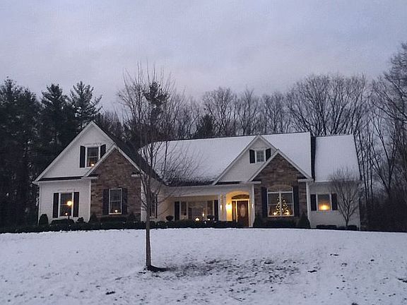 Newer upscale 3 BR, 2.5 bath 2,927 sq. ft. traditional ranch + 465 sq. ft. finished/heated room in basement great for workshop, crafts, or work-out room. Remainder of basement with 9’+ ceiling unfinished and full of potential. Three-season screened porch in back overlooks very private woods-lined backyard. Front porch overlooks valley sunsets. On landscaped .93 acre lot in beautiful Ellsworth Lane neighborhood close to I-91, I-84, and shopping. Lot is flat in the backyard and gently sloping toward the street in the front.