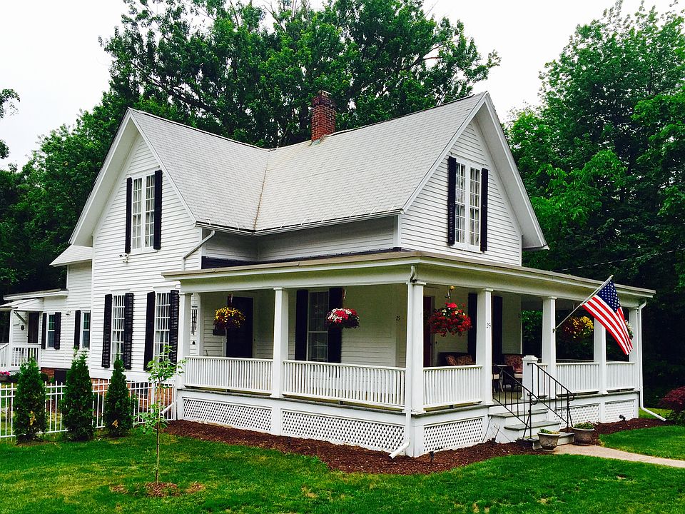 Absolutely stunning Farmhouse style Colonial located in the heart of historic Talcotville. This breathtaking home has been meticulously renovated from top to bottom, there is nothing left for you to do but move right in!! The eat-in kitchen is the most recent of the renovations and features a cozy café' inspired sitting area where you can start every morning out right. The spacious living room is centered by a wood stove with a dedicated brick chimney which also becomes the focal point of the room. Other features of the home are a huge wrap around covered porch, newly installed stone paver patio, high ceilings, an oversized barn style garage with a full sized loft, 1st floor bedroom that can be used as a master or an office / studio and forced warm air gas heat with central air, just to name a few!! This amazing home truly has it all