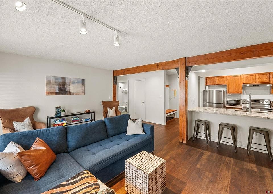 If you’re looking for a stylish and turn-key homebase just steps from the slopes in Mt. Crested Butte, look no further than Redstone #22! This spacious 1 bed/1 bath unit has undergone a full transformation in recent years with gorgeous new granite countertops, appliances, a full bathroom remodel, new paint, flooring, privacy shutters, and fashionable modern furniture. The ground level location is ultra convenient (who wants to climb a bunch of stairs after a long day of playing outside?!), and the unit offers a roomy entryway with built-in bench for kicking off your boots. The open layout is great for entertaining, and the gas fireplace offers a cozy respite on chilly mountain evenings. Off the living room, a generously sized balcony extends your living space outdoors, and a large owners closet provides secure storage for your personal items between visits. The generously sized bedroom would easily accommodate a king bed, and the pullout couch in the living room easily accommodates overflow guests. You can’t beat this location as you’re a mere 1 minute walk to all the action of the base area, including ski slopes & bike trails, bars, restaurants, shops, and the transit center where you can catch the free shuttle to downtown Crested Butte for boutique shopping and dining along Elk Avenue. The Redstone complex is known for its spacious units with great layouts, as well as having not one, but two, hot tubs available for owner and guest use. Offered fully furnished & turn-key, Redstone #22 delivers everything renters are looking for and would make an excellent investment property or your own private mountain retreat. This one is ready to start using or enjoying right away, just in time for ski season!