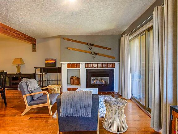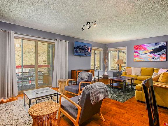 This gorgeous two bedroom/2 bath corner Redstone unit is located within easy walking distance to the slopes, base area restaurants, and slope side activities. Park your car and enjoy the nearby free town shuttle service which takes you down to the historic town of Crested Butte to enjoy the many fine shops and restaurants. The large open living and dining area have been updated with cool rustic beams and enjoys a cozy gas fireplace, perfect for warming up after a day on the slopes. The adjoining kitchen has plenty of storage space, newer quartz countertops, updated tile, stainless appliances, and extra bar seating. 2 covered decks offer personal outdoor space, one for grillin and one for chillen! The larger deck has sliders off each bedroom and takes in the Colorado sunshine and spectacular views of Mt Crested Butte's peak and the ski area. Both bedrooms are spacious with room for king beds. Each bathroom includes large vanities with marble countertops and ample storage. Additionally, this condo has sleek engineered hardwood floors throughout, newer paint, and newer lighting making it move-in ready! The complex also offers two onsite hot tubs, common area laundry facilities, indoor sauna and an outdoor grilling area. At 1047 sq feet, this beautifully updated unit is the perfect spot for personal use OR as a short-term rental property. Offered turnkey, the property already has rentals secured for the 2025/2026 ski season! This could be your perfect mountain getaway just in time for the start of the season!