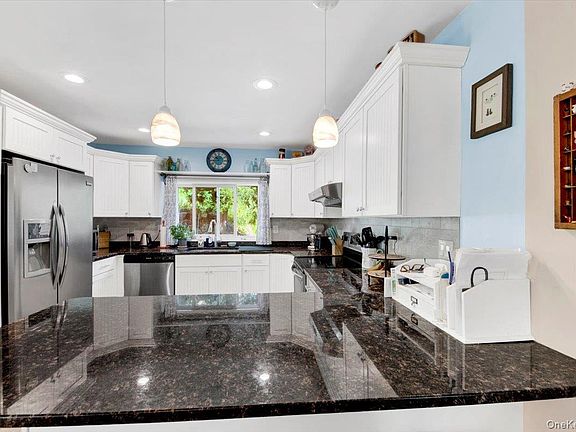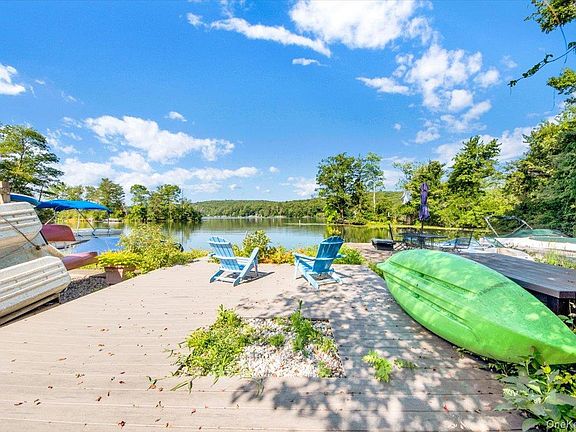 Welcome to 25 Evergreen Road. Beautifully updated in 2023, this 2-bedroom, 2-bath ranch offers modern comfort just minutes from Lake Oscawana — with your own private dock, lake rights, and access to a residents-only beach. This home blends classic character with contemporary style for the perfect lakeside retreat. The sun-filled main level features a cozy foyer and home office, leading to the dining area, open kitchen, and living room. The kitchen boasts a large peninsula, stainless steel appliances, and flows to a bright guest bedroom with built-in bookshelves. The primary suite includes a private ensuite bath with a double vanity and a newly installed stackable washer and dryer for added convenience. The finished lower level provides flexible living or storage space. Step outside to a stone patio ideal for entertaining or relaxing. Just a minute walk away, enjoy your private dock, sandy beach, and calm waters for swimming, motor boating, jet skiing, or kayaking. Whether it’s morning coffee by the lake or sunset cruises, this location offers it all. Move-in ready and about an hour drive to NYC, 25 Evergreen Road is a rare find combining comfort with exclusive lake access — an opportunity not to be missed.