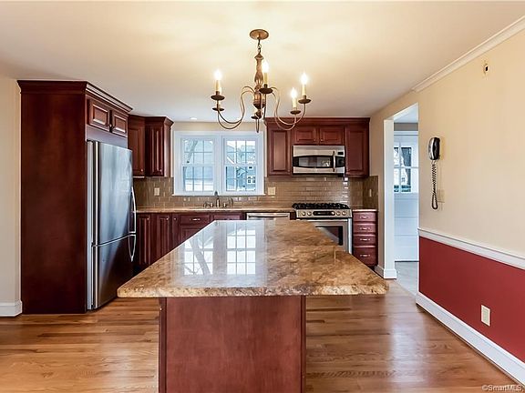 Location, location, location for this walk to West Hartford Center and Blue Back Square home. Hurry over to this nicely updated home. This Colonial home has new (2 years) central air, new (2 years) furnace, new (2 years) hot water heater, new 1 year sunroom roof and replacement windows. Lovingly maintained and nicely updated with granite kitchen island and counters in this open kitchen space with hardwood floor. Off of the kitchen is a mudroom with washer/dryer making laundry time easy while preparing dinner! There is a great view from the kitchen or the sunroom into the generous open backyard space. There is even an invisible fence for your pup! The inviting living room has a hardwood floor and lovely wood burning fireplace with easy access to the outdoors via the sunroom. A half bath completes the first floor. Upstairs you will find 3 spacious bedrooms, each with hardwood floor. The full bath has been recently updated with an attractive vanity and sink, new lighting, new faucet and mirror. It has a classic West Hartford tile floor and a window provides great views to the rear yard. Downstairs there is a family room with new wall to wall carpeting to keep this space cozy. There is also a 1 car garage. Don't miss your opportunity to call this classic house, your next home.