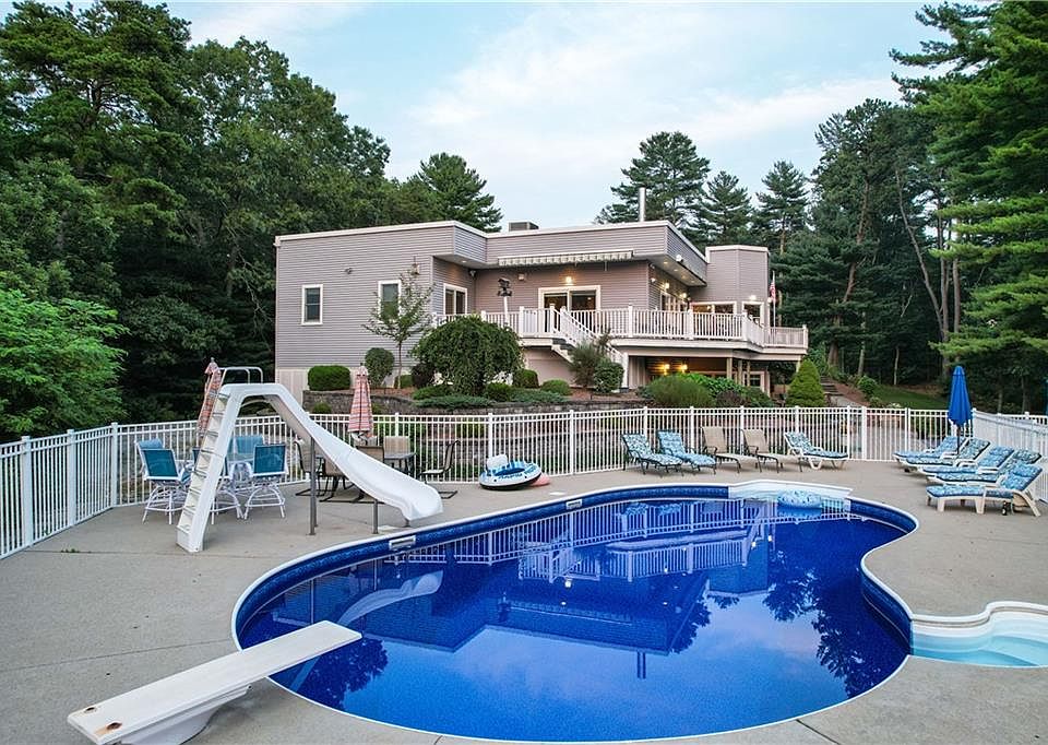 This waterfront retreat is located directly on 82-acre Locustville Pond and is an entertainer's or sport enthusiast paradise! The property consists of a 6155 SF, 3/4 bedroom home, all rooms are individually insulated, 4-1/2 bath, 2 full kitchens, one upstairs and one downstairs, a large owner's suite with two large closets, 2 laundry areas, a full body gym, a climate controlled safe room - which would make a great wine cellar, a generator, large decks and patios, a 2 car and 4 car heated garage and a separate 3-bay commercial garage with electricity located at the far end of the property, a built-in pool and two docks; one has a boat lift and a storage shed, an additional barn/shed, an electric pet fence, security system - all on 3.07 private, beautifully landscaped and hard-scaped secluded acres! Horses/farm permitted, multi generational living, vacation retreat, car collectors, home occupation. Located minutes from "The Preserve" sporting center, easy access from major highways.