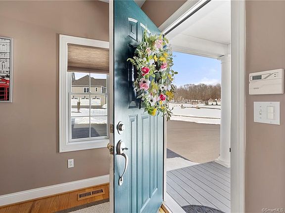 Location,location, location...A spacious wrap around front porch welcomes you to this elegant and character rich home. Open floor plan, ample windows enticing loads of bright sunlight, & front porch leading to the sunroom & back patio, create the perfect flow for everyday living w/fabulous options for WOW factor entertaining. The inviting entry foyer opens into DR w/walls of windows & pocket doors to the kitchen. Awesome chefs kitchen provides fantastic space for cooking & dining featuring SS appliances, center island/breakfast bar, glass tile backsplash, pantry, & cabinets galore! Kitchen opens into the incredible great room w/cathedral ceiling, stunning stone fireplace, & sliders to the patio & is connected to a beautiful sunroom overlooking the peaceful & private backyard. A useful mudroom completes the 1st floor. Upstairs you will find 3 generously sized BRs, convenient laundry room w/ utility sink, & gorgeous master suite. MBR suite offers oversized walk-in closet, exquisite bath w/ soaking tub, shower, & double sinks. This amazing home sits in the quiet seclusion of the desirable South End of historic Cheshire, CT in one of the most luxurious new subdivisions, Farm Meadows. It is a commuters dream, perfectly located just minutes from I-91 & CT 15. The center of town, only moments away, offers a quaint New England style hub of community activity. The intuitive design of this dream home truly incorporates the serene setting of a private 2+ acre refuge. Bonus massive 3rd floor walk-up room can be easily refinished for additional space. Amenities include sparking hardwood floors, oversized 3 car garage complete with charging outlet for charging electric vehicles, & economical solar panels that have been paid off by the seller (current electric bill is only $3-10/month!)