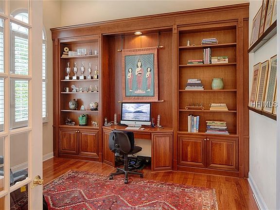 A fabulous open floor plan, meticulous condition, & a beautiful water view...what else could you ask for?! This Hampton Hall offering features 3 BR's each w/private BA's, great room w/fireplace & built-ins, a stunning kitchen, home office w/ built-in bookcases, & a bonus room (4th BR) w/ a 4th full bath. You will want great outdoor living space to enjoy the views from, right? Two covered porches (one screened) and a large paver patio will check that box! All hardwood & tile on the main level, walk-in attic w/spray foam, new epoxy floor in garage, Marathon water heater, plantation shutters, your own orange & fig trees...This is it! A perfect 10!
