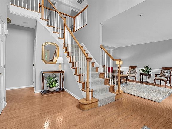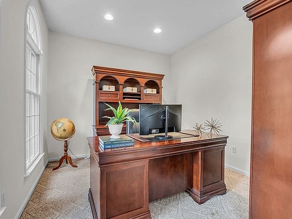 This stunning brick Toll Brothers home, prominently positioned on a beautiful corner lot, offers exceptional amenities in a highly sought-after neighborhood. Upon entering, you'll be greeted by a two story entry, 9-foot ceilings, intricate trim work, and an inviting open floor plan. The living and dining rooms feature elegant hardwood floors and architectural columns, while the front office boasts French doors for added privacy. The spacious kitchen, equipped with stainless steel appliances, seamlessly flows into the cozy family room with a fireplace and hardwood flooring. Additional conveniences include a large laundry room and direct access to a three-car garage. Upstairs, the expansive master suite offers a generous walk-in closet, a sitting area, and a luxurious bath, complemented by equally large additional bedrooms. This home is designed for both comfort and style, perfect for modern living.