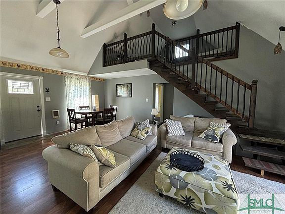 Unique Home on 1.39 acres. Metal roof over this high ceiling living room to the Kitchen and open beams for decor to this open floor plan of 2 bedroom and 1 bath. There is a loft that can be your 3rd bedroom or office space. there is plentu of room to build your shop or garage at the end of this cul-de-sac. Easy commute to Statesboro or Savannah or the new Hyundai location. You can bet your boots this one might get away if you dont act quickly.
