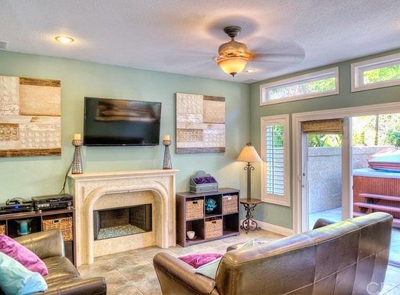 Wonderfully remodeled and expanded Richmond Pointe home with elegant beachy atmosphere. Enter gated front courtyard to large seating area surrounded by thriving gardens. The deck wraps down the side and across the back, creating a very low maintenance yard. Now a 4 Bedroom, 2 bath home, this home is a tastefully understated. Living room features a carved limestone fireplace with ice rock. It opens to the kitchen through a granite topped breakfast bar, destined to be the gathering place. Kitchen was completely remodeled and upgraded with custom island, painted custom hardwood cabinetry, pantry, and stainless steel appliances. Also on main floor is large dining or family room, remodeled half bath with beautiful above counter glass sink and new vanity, and laundry area. All flooring is Italian slate. Up carpeted stairs, lighted by a skylight are 4 bedrooms. Two large secondary bedrooms, one with a peek-a-boo ocean view, both with ocean breezes and built out closets. Master suite and fourth bedroom are just past a huge added linen closet. Master is ensuite with walk-in closet and dual sinks. Bedroom 4 has built-in closet, drawers & desk. Large 2 car garage. Twoish miles to the beach. Nearby parks, trails, shopping and schools. NO MELLO ROOS. LOW HOA.